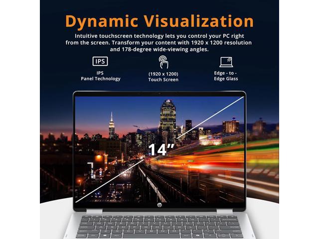 - 14" 2K IPS Touchscreen Display:14-inch diagonal, 2K (1920 x 1200), multitouch-enabled, IPS, edge-to-edge glass, micro-edge, 300 nits, 62.5% sRGB display.