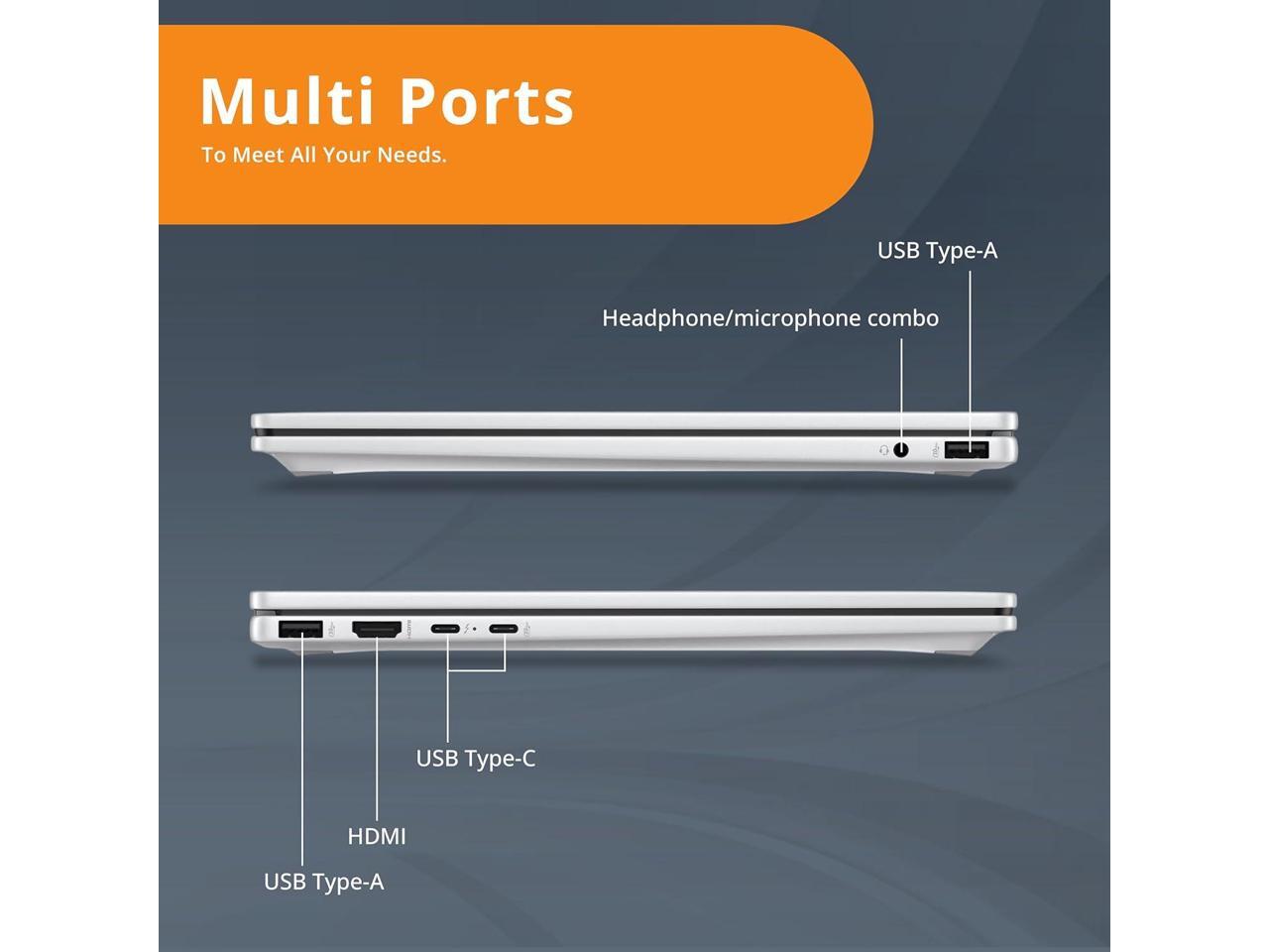 - Windows 11 Pro&Ports2x USB Type-C, 2x USB Type-A, 1 x HDMI 2.1, 1x Headphone/ Microphone combo. Wi-Fi 6E + Bluetooth 5.3. Silver.