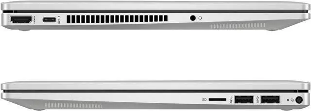 Ports: 2× Thunderbolt 4 (USB-C, DisplayPort, Power Delivery), 2× USB Type-A, 1× HDMI 2.1, 1× headphone/microphone combo, 1× microSD card reader