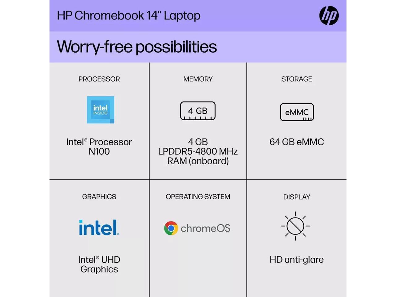 HP 14a-nf Chromebook 14" HD Laptop Intel N100 4GB 64GB Chrome OS,