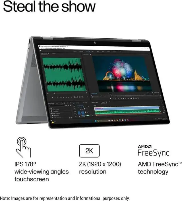 Display: Brilliant 16" WUXGA (1920 x 1200) IPS Touchscreen 400 nits, micro-edge, Low Blue Light, 60Hz, Thin Bezel LCD Display. Powered by AMD Radeon 860M Graphics,