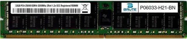Brute Networks P06033-H21-BN is an OEM compatible 32GB PC4-25600 DDR4-3200Mhz 2Rx4 1.2v ECC Registered RDIMM , equivalent to HPE labeled PN#: P06033-H21