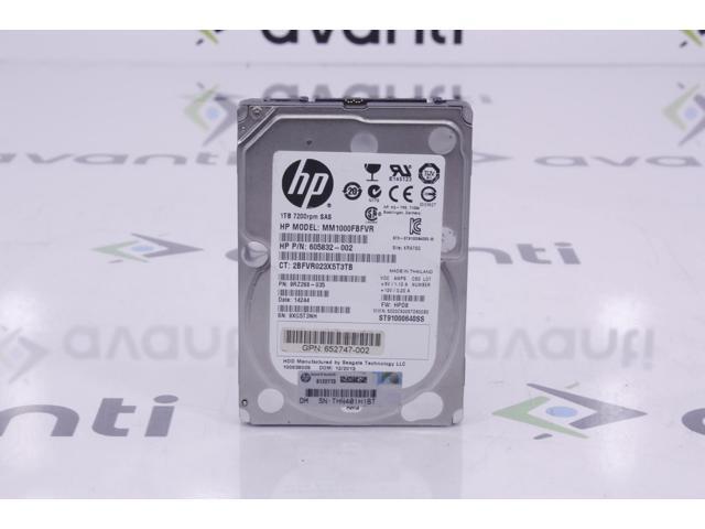 - General InformationManufacturer: Hewlett Packard EnterpriseManufacturer Part Number: 605832-002Manufacturer Website Address: http://www.hpe.comBrand Name: HPEProduct Model: MM1000FBFVRProduct Name: Hot-Plug 1TB 6G 7.2K RPM, 2.5" SFF Dual-Port SAS Hard DriveProduct Type: Hard DriveTechnical InformationStorage Capacity: 1 TBDrive PerformanceSpindle Speed (rpm): 7200Network & CommunicationWireless LAN: NoInterfaces/PortsDrive Interface: SASDrive Interface Standard: 6Gb/s SASPhysical CharacteristicsDrive Type: InternalForm Factor: 2.5"Hot Pluggable: YesMiscellaneousEnvironmentally Friendly: YesEnvironmental Certification: RoHS