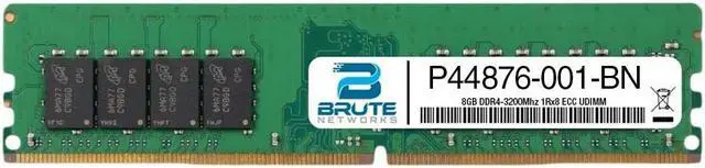 Brute Networks P44876-001-BN is an OEM compatible 8GB PC4-25600 DDR4-3200Mhz 1Rx8 ECC UDIMM, equivalent to HPE labeled PN#: P44876-001