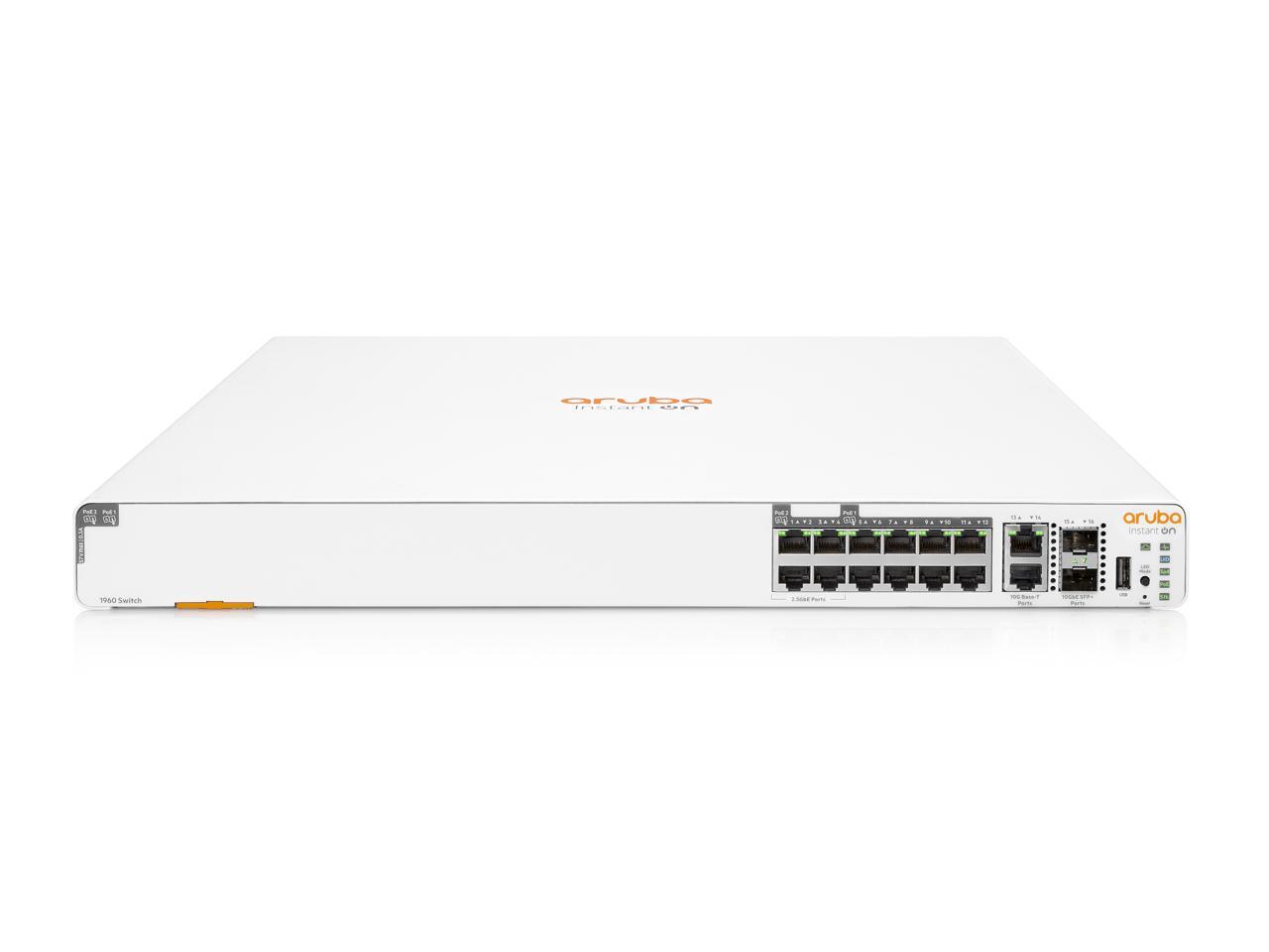 - The Aruba 1960 aggregation switch comes with twelve (12) 10GBase-T and four (4) SFP+ ports, providing 10G connectivity to servers, network storage devices and access switches alike.