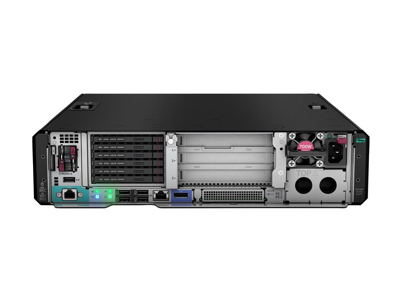 HPE ProLiant DL145 Gen11 server with one AMD EPYC™ 8024P Processor, 32 GB (1x32 GB) Dual Rank Memory, 1 HPE NS204i-u Gen11 NVMe Hot Plug Boot Optimized Storage Device, support for 2 SFF dr- P79788-005