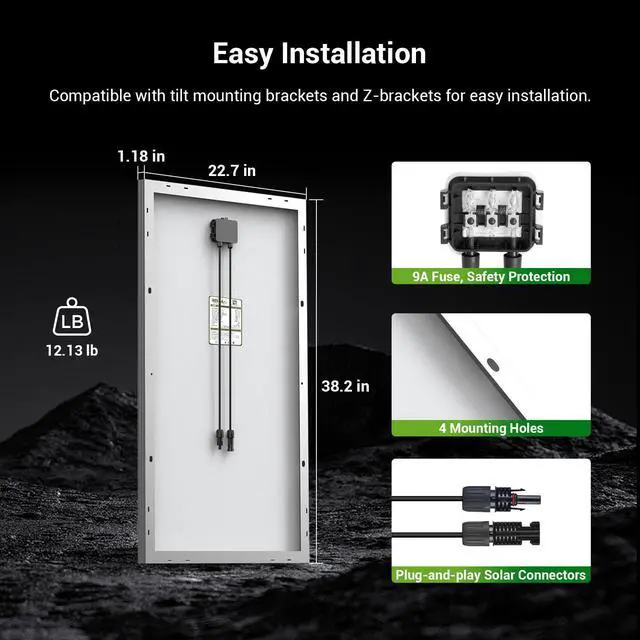 | Included Components | Battery, Connectors, Frame, Solar Panels |
