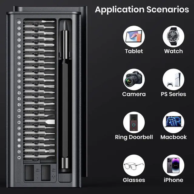 - It includes various shapes and specifications of blade heads such as cross, straight, flower, Y-shaped, hexagonal, triangular, five-star, U-shaped, etc.,which can be used to disassemble computer hard drives, razors, sunglasses, etc.