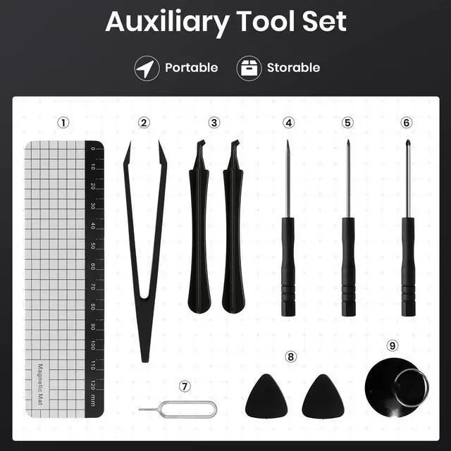 - Auxiliary tools include crowbars, tweezers, suction cups, small screwdrivers, etc. These tools can help you carry out disassembly and installation work more conveniently.