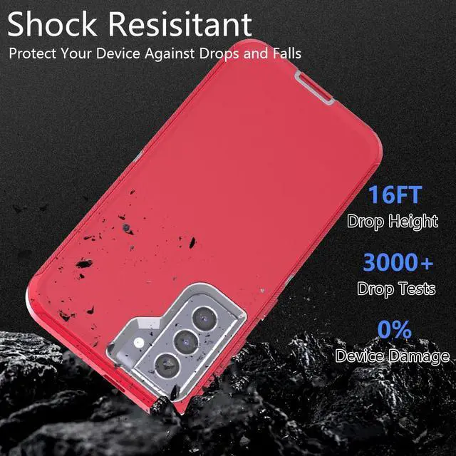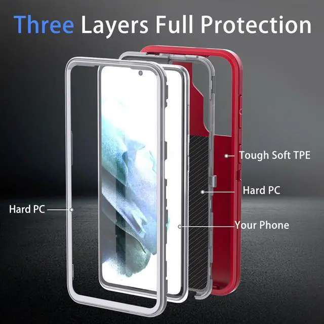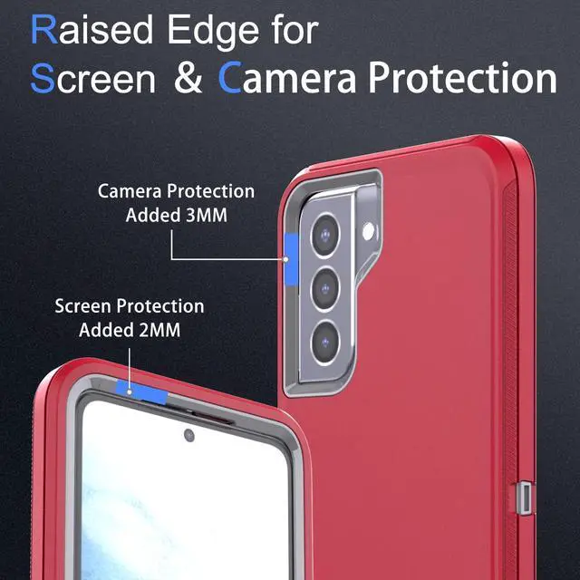 for Samsung Galaxy S21 Case, 3-in-1 Heavy-Duty Protection with 2 * 0.18 Fingerprint Glass Film1*Super Lens Film and Shockproof, Drop Proof, Ultra-Rugged Phone Cover S21 6.2" -Red/Grey