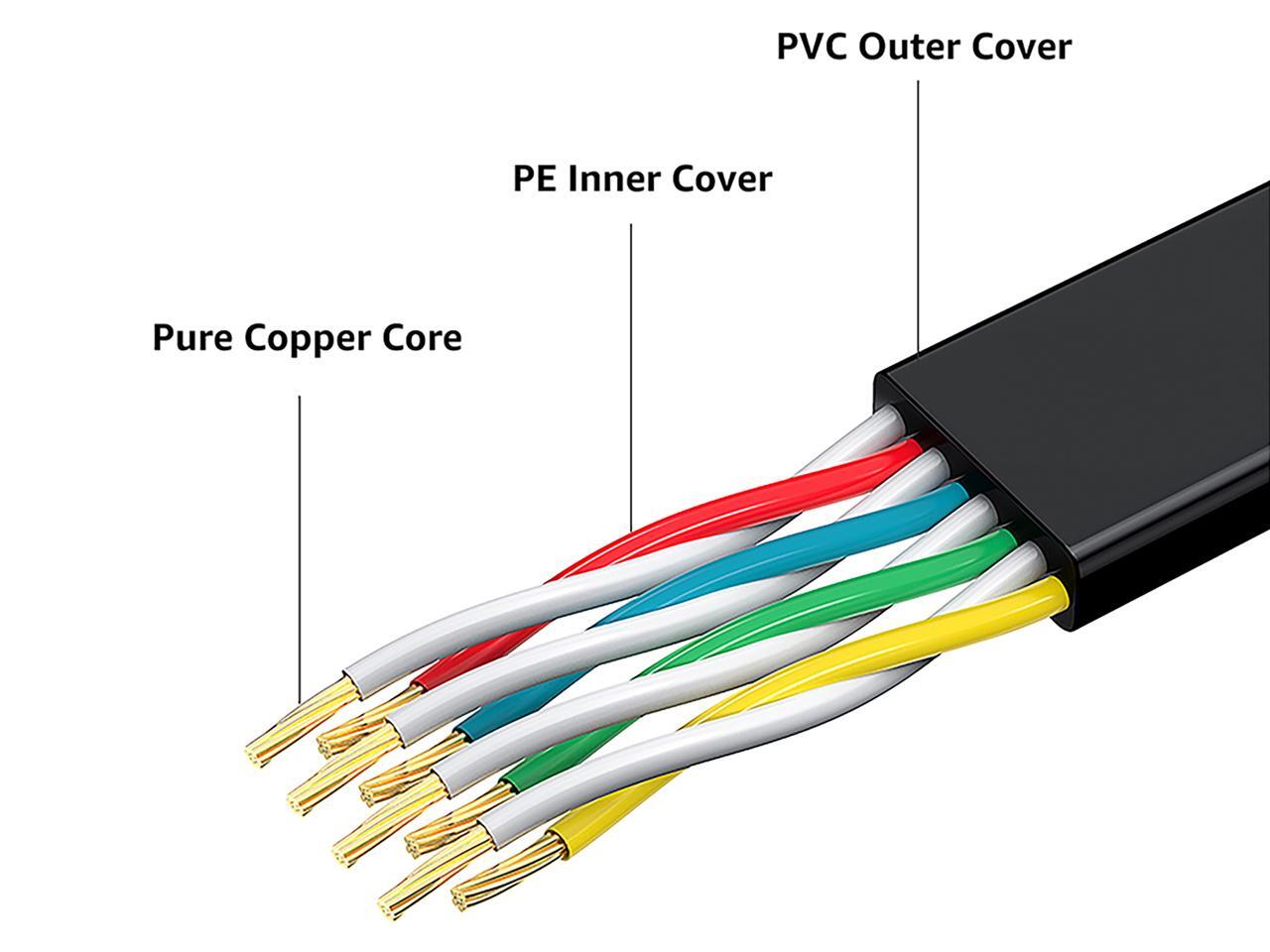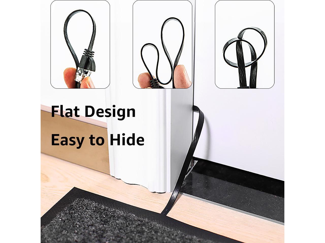 - Flat Cable: Flat shape make the long ethernet cable 10ft run along walls and corners easily, super flexible when run under the carpet or bent in the plane of its thin cross-section such as doors, rotating arms, drawers etc.