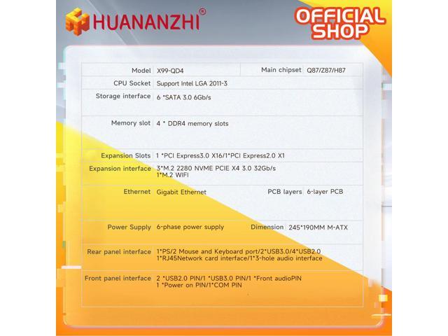 HUANANZHI X99 QD4 LGA 2011-3 X99 Motherboard support E5 2620 2640 2650 2666 2670 2680 2690 2696 2699 V3 V4 All Series