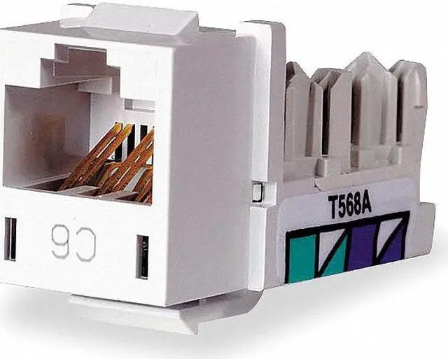 Voice and data jacks differ by cable type, compatibilities, series and other considerations. Hubbell Premise Wiring Modular Jack include characteristics like: Color: White, Material: Plastic, Number Of Ports: 1.