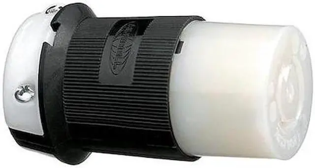 The HUBBELL 20A Twist-Lock Connector (L5-20R) is a locking connector suitable for use in industrial and commercial electrical applications. It features a ribbed nylon housing; rated for specified environmental conditions per manufacturer specifications, with a cord grip design intended to reduce strain on wire terminations. The connector includes a clear, funnel-shaped wire entry assists with wiring installation and an integral dust shield limits ingress of contaminants into the wiring chamber.