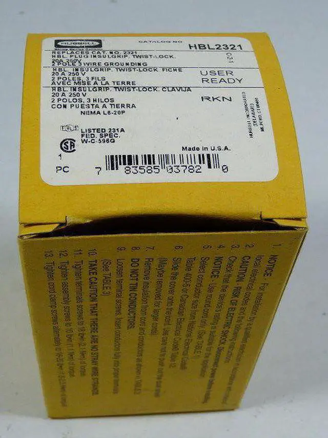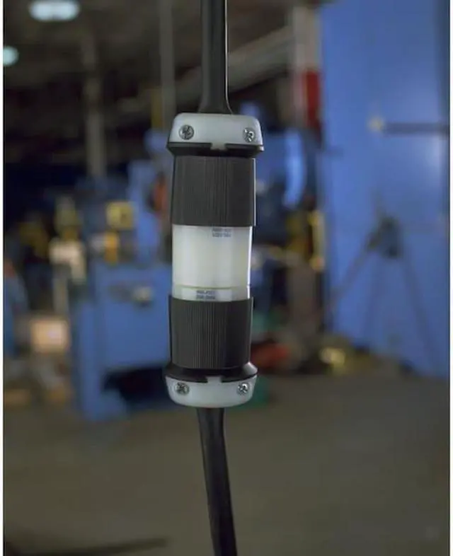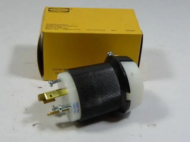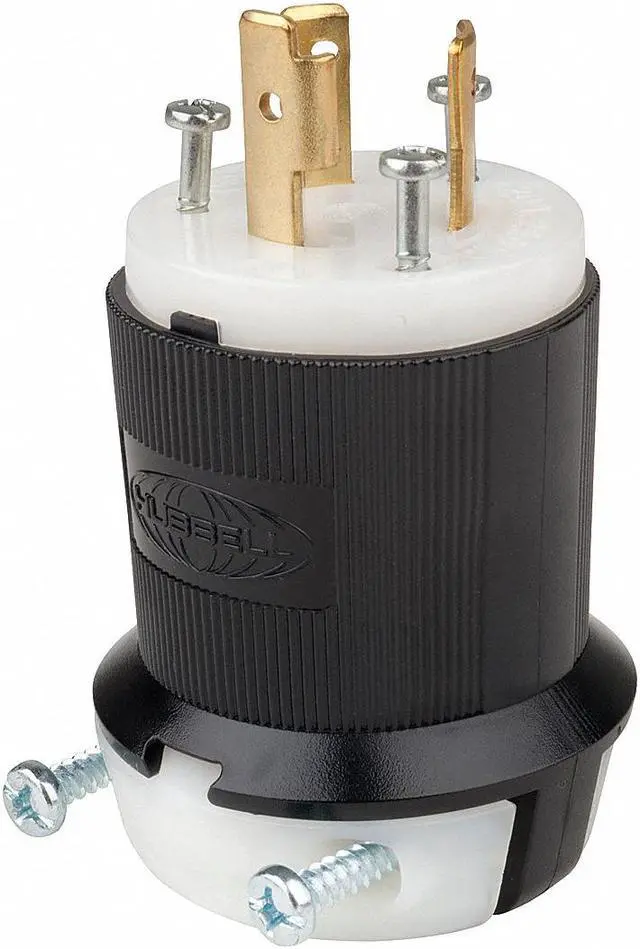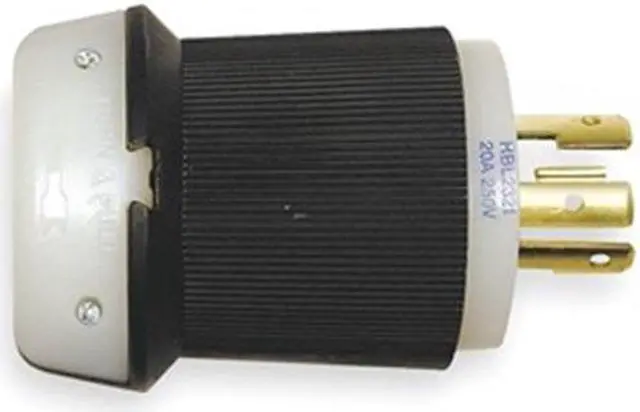 The HUBBELL 20A Twist-Lock Plug (L6-20P) is a locking plug intended for use in industrial settings. Rated for 20 amps and 250V AC, this plug features a ribbed nylon housing.