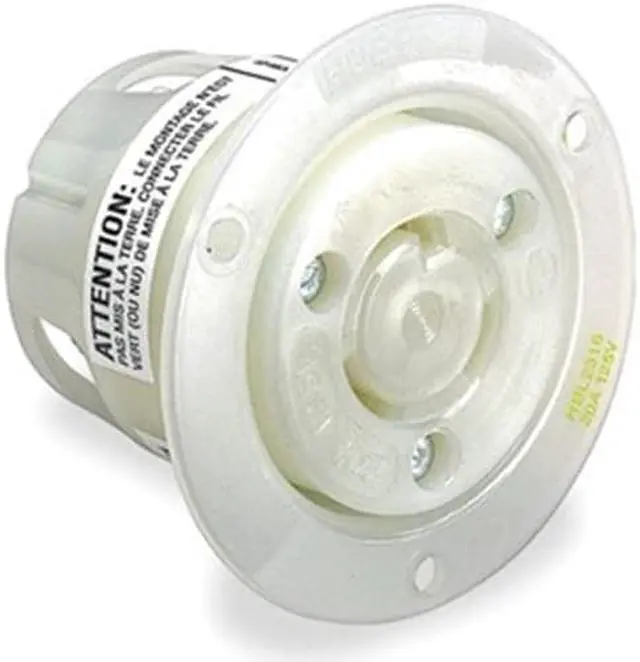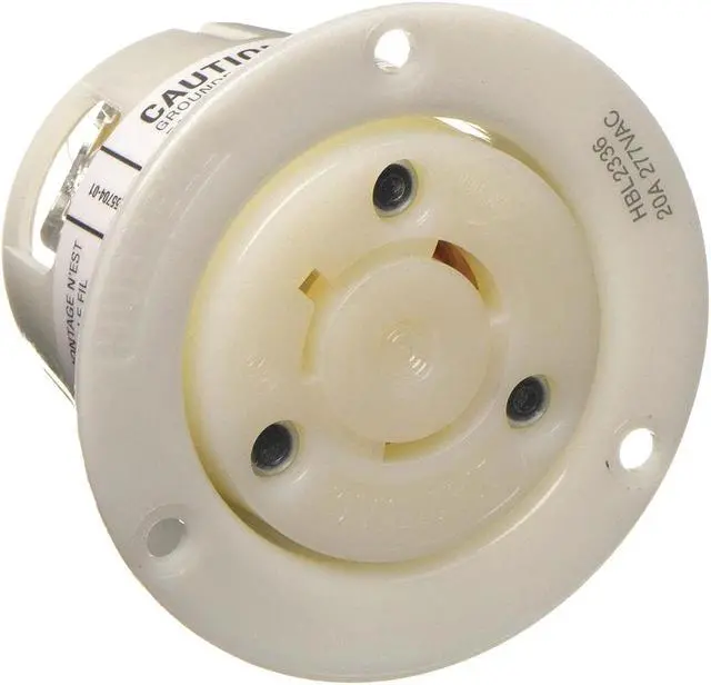 Flanged Locking Receptacle, Connection Orientation Straight, Current Rating 20 A, Flange Shape Round, Flange Type Flanged, Housing Color White, Housing Material Nylon, Mount Type Flush, NEMA Enclosure Rating 1, NEMA Receptacle Configuration L7-20R, Number of Gangs 1, Number of Poles 2, Number of Wires 3, Phase Single, Polarized Yes, Shrouded No, Voltage Rating 277V AC, Wire Connection Type Screw Terminals, Wiring Style Standard, AFCI No, Contact Material Brass, Cover Type No Cover. This item has been restricted from sale in the following state (s): []