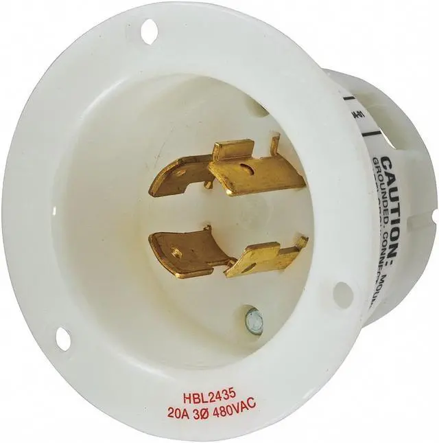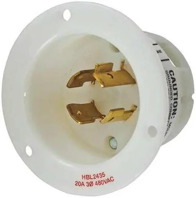 Flanged Locking Inlet, Current Rating 20 A, Flange Material Steel, Housing Color White, IP Rating IP20, Mount Type Flush, NEMA Enclosure Rating 12, 4X, NEMA Plug Configuration L16-20P, Number of Blades 4, Number of Poles 3, Phase Three, Resistance Properties Moisture Resistant, Voltage Rating 480V AC, Wiring Style Standard, Face Diameter 2.23 in, Flange Diameter 3.06 in, Flange Type Flanged, Grounding Grounded, Horsepower Rating 5 hp, Housing Material Nylon, Includes Mounting Hardware Yes. This item has been restricted from sale in the following state (s): []