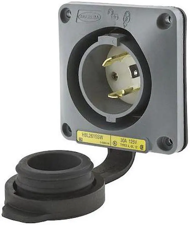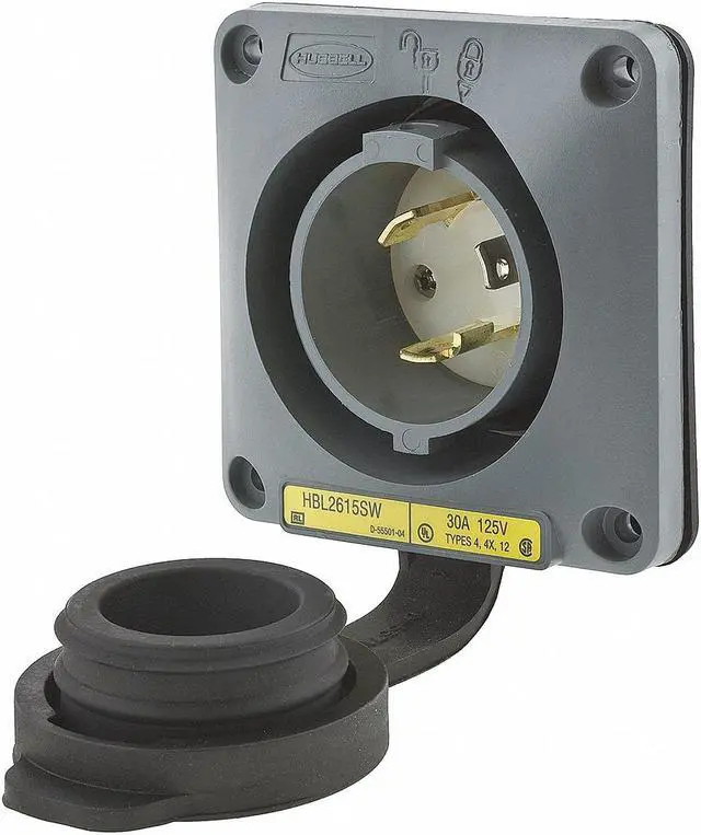 Watertight Flanged Locking Inlet, Current Rating 30 A, Flange Material PBT, Housing Color Gray, IP Rating IP66, Mount Type Flush, NEMA Enclosure Rating 12, 4, 4X, NEMA Plug Configuration L5-30P, Number of Blades 3, Number of Poles 2, Phase Single, Resistance Properties Impact Resistant, Watertight, Voltage Rating 125V AC, Wiring Style Standard, Flange Height 3.75 in, Flange Type Flanged, Grounding Grounded, Horsepower Rating 2 hp, Housing Material Thermoplastic, Maximum Wire Size 8 AWG. This item has been restricted from sale in the following state (s): []