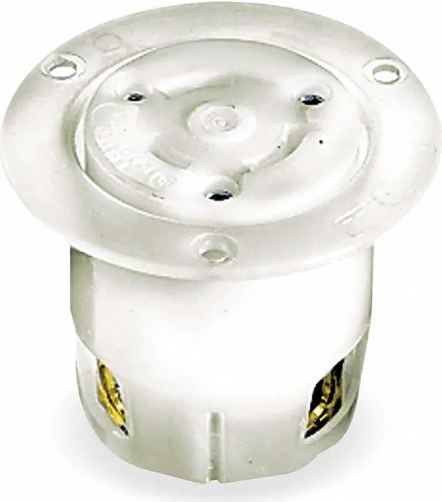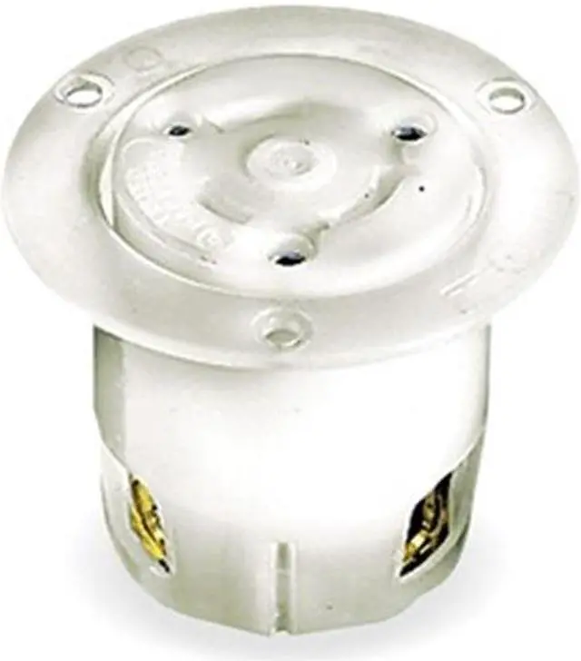 Flanged Locking Receptacle, Connection Orientation Straight, Current Rating 30 A, Flange Shape Round, Flange Type Flanged, Housing Color White, Housing Material Nylon, Mount Type Flush, NEMA Enclosure Rating 1, NEMA Receptacle Configuration L8-30R, Number of Gangs 1, Number of Poles 2, Number of Wires 3, Phase Single, Polarized Yes, Shrouded No, Voltage Rating 480V AC, Wire Connection Type Screw Terminals, Wiring Style Standard, AFCI No, Contact Material Brass, Cover Type No Cover. This item has been restricted from sale in the following state (s): []