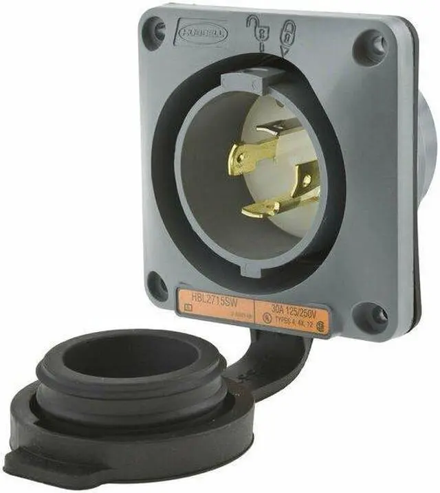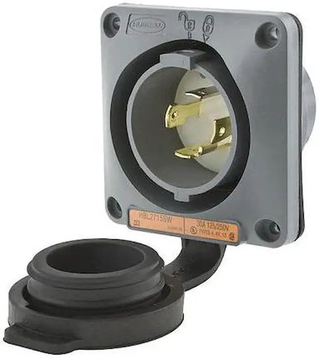 Watertight Flanged Locking Inlet, Current Rating 30 A, Housing Color Gray, IP Rating IP66, Mount Type Flush, NEMA Enclosure Rating 12, 4, 4X, NEMA Plug Configuration L14-30P, Number of Blades 4, Number of Poles 3, Phase Single, Resistance Properties Impact Resistant, Watertight, Voltage Rating 125/250V AC, Wiring Style Standard, Flange Type Flanged, Grounding Grounded, Horsepower Rating 2 hp, Housing Material Thermoplastic, Includes Mounting Hardware Yes, Maximum Wire Size 8 AWG. This item has been restricted from sale in the following state (s): []