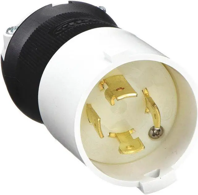 Locking Plug, Connection Orientation Straight, Current Rating 30 A, Housing Color Black, White, Housing Material Nylon, NEMA Plug Configuration L15-30P, Number of Blades 4, Number of Poles 3, Phase Three, Polarized Yes, Resistance Properties Chemical Resistant, Impact Resistant, Watertight, Voltage Rating 250V AC, Wire Connection Type Screw Terminals, Wiring Style Standard, Face Diameter 2.23 in, For Maximum Cable Diameter 1.15 in, For Minimum Cable Diameter 0.35 in, Grade Industrial. This item has been restricted from sale in the following state (s): []
