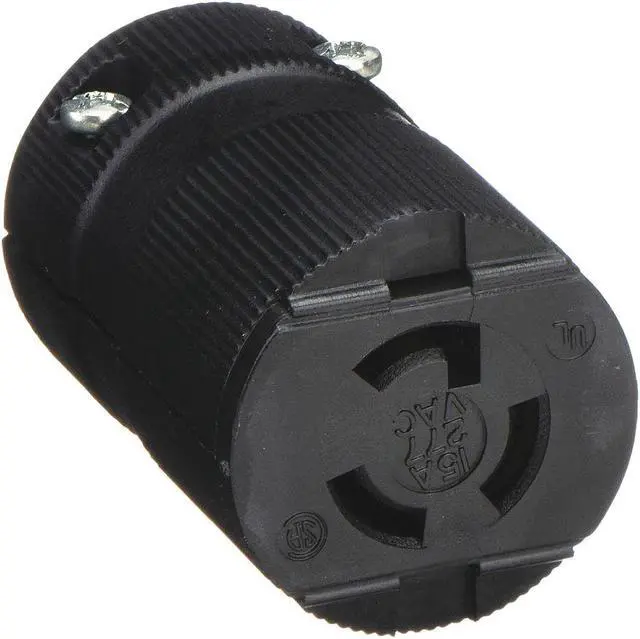 Midget Locking Connector, Connection Orientation Straight, Current Rating 15 A, Housing Color Black, Housing Material Nylon, IP Rating IP20, NEMA Receptacle Configuration L7-15R, Number of Poles 2, Number of Wires 3, Phase Single, Resistance Properties Impact Resistant, Shrouded No, Voltage Rating 277V AC, Wire Connection Type Screw Terminals, Wiring Style Hinged, Cap Type No Cap or Cover, Contact Material Brass, For Maximum Cable Diameter 0.66 in, For Minimum Cable Diameter 0.22 in. This item has been restricted from sale in the following state (s): []