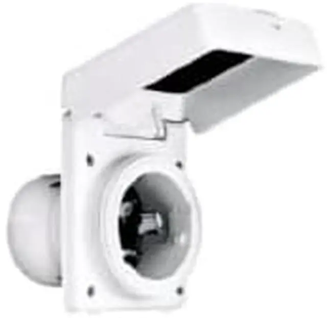 Flanged Locking Inlet, Shrouded / Non-Shrouded Non-Shrouded, Wiring Style Standard, Mounting Type Flush Mount, Grade Marine, Material Thermoplastic/Composite, 50 Amps, Voltage 125/250V AC, Number of Poles 3, Number of Wires 4, Color White, Non-NEMA NEMA Configuration, NEMA Rating 12, 4X, IP Rating 56, Phase 1, Standards UL/CSA, Special Features With Cover