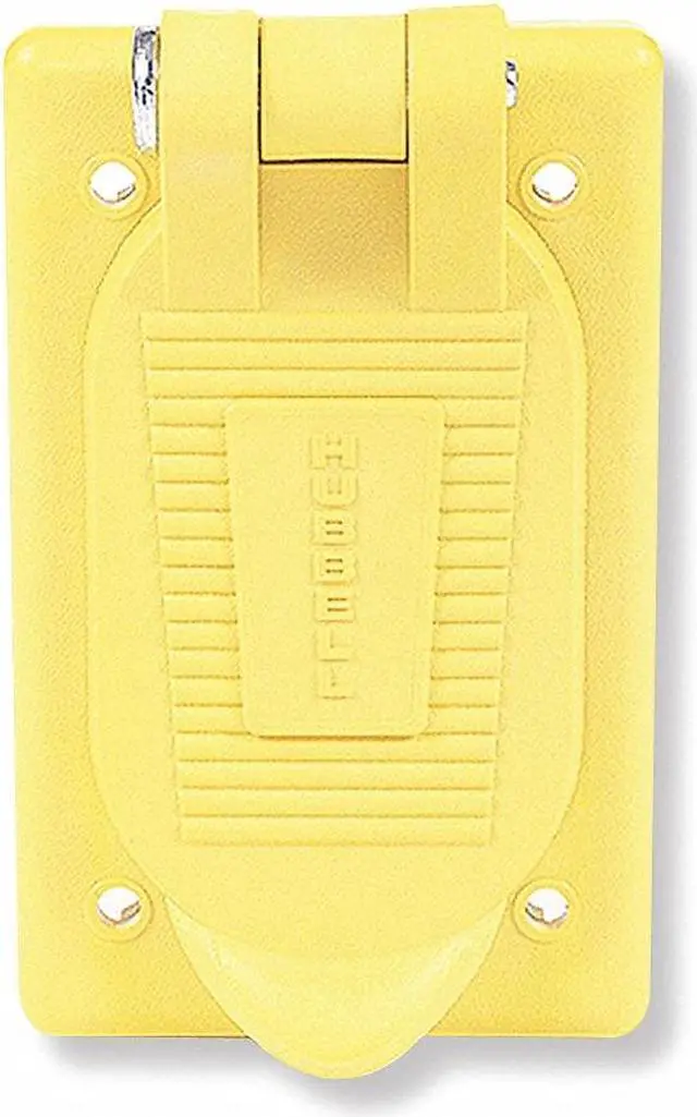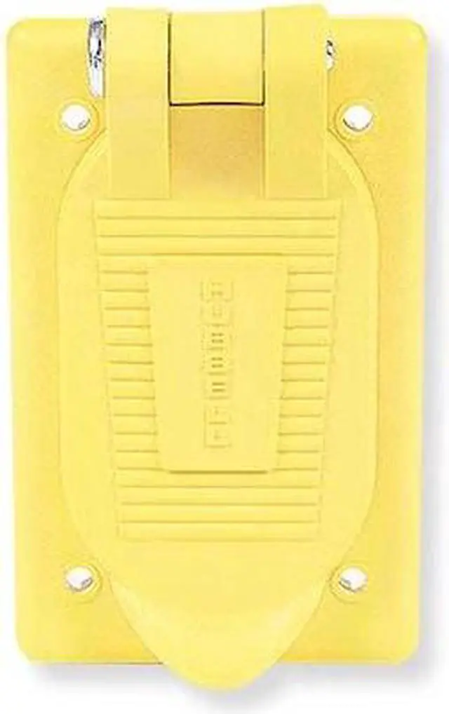 Weatherproof Cover, Mounting Box FS or FD Weatherproof Boxes, For Use With Duplex, GFCI, Surge Receptacles and STYLE LINE (R) Devices, and FS/FD Boxes, Mounting Orientation Vertical, Lid Style Self Closing, Number of Gangs 1, Gasket Material Neoprene, Cover Material Thermoplastic, Color Yellow, Height 4 9/16 in, Width 2 57/64 in, Standards CM, UL Listed, Includes Neoprene Gaskets, Screws, Stainless Steel. This item has been restricted from sale in the following state (s): []