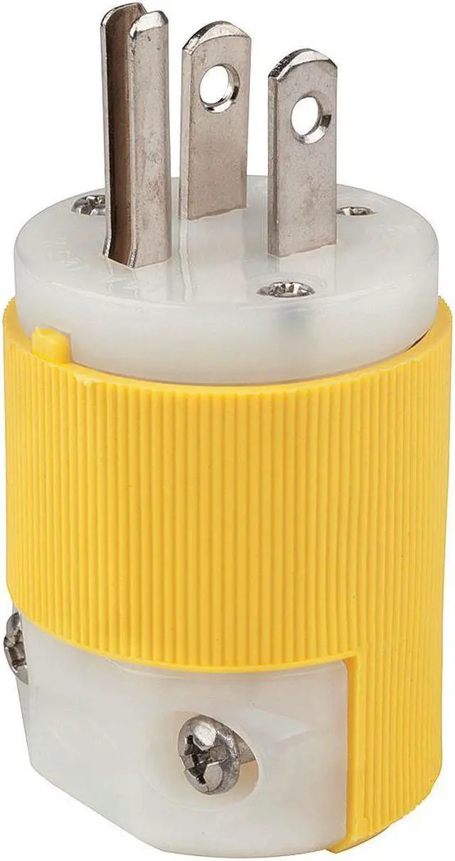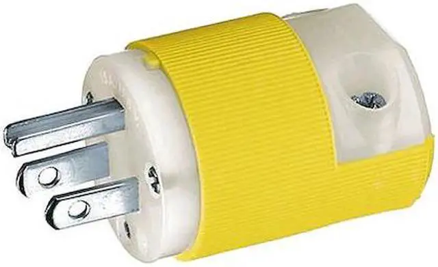 Straight Blade Plug, Connection Orientation Straight, Current Rating 15 A, Grounding Grounded, Horsepower Rating 1/2 hp, Housing Color Yellow, IP Rating IP20, NEMA Plug Configuration 5-15P, Number of Blades 3, Number of Poles 2, Phase Single, Polarized Yes, Resistance Properties Chemical Resistant, Corrosion Resistant, Impact Resistant, UL 94 Flammability Rating HB, Voltage Rating 125V AC, Wire Connection Type Screw Terminals, Wiring Style Standard, For Maximum Cable Diameter 0.72 in. This item has been restricted from sale in the following state (s): []