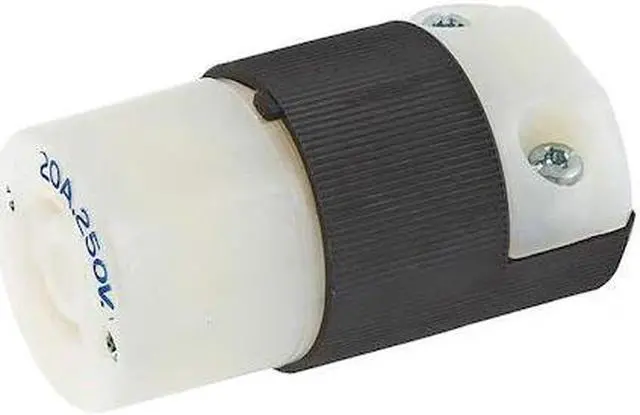 The HUBBELL 20A Twist-Lock Connector (L2-20R) is a locking connector suitable for industrial and commercial electrical applications. It features a two-pole, two-wire configuration rated for 250VAC and 20 amps, with an insulated nylon body.