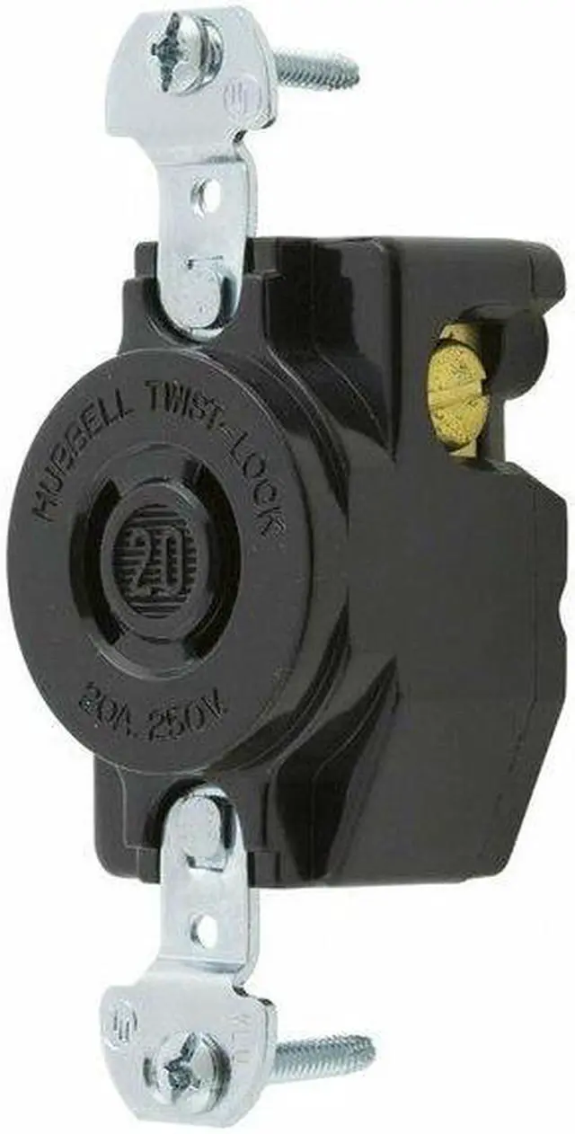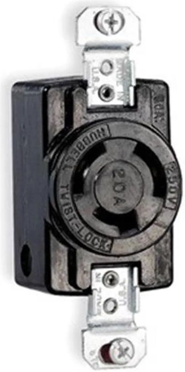 Locking Receptacle, Connection Orientation Straight, Current Rating 20 A, Flange Type Non-Flanged, Housing Color Black, Housing Material Thermoplastic, Mount Type Flush, NEMA Enclosure Rating 1, NEMA Receptacle Configuration L2-20R, Number of Gangs 1, Number of Poles 2, Number of Wires 2, Phase Single, Polarized Yes, Shrouded No, Voltage Rating 250V AC, Wire Connection Type Screw Terminals, Wiring Style Standard, AFCI No, Contact Material Brass, Cover Type No Cover. This item has been restricted from sale in the following state (s): []