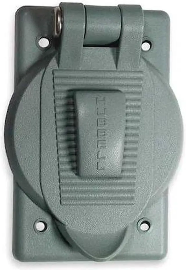 Weatherproof Cover, Mounting Box FS or FD Weatherproof Boxes, For Use With Single Receptacles, Mounting Orientation Vertical, Lid Style Self Closing, Number of Gangs 1, Gasket Material Neoprene, Cover Material Polycarbonate, Color Gray, Height 4 9/16 in, Width 2 27/32 in, Standards UL Listed, Includes Mounting Screws. This item has been restricted from sale in the following state (s): []