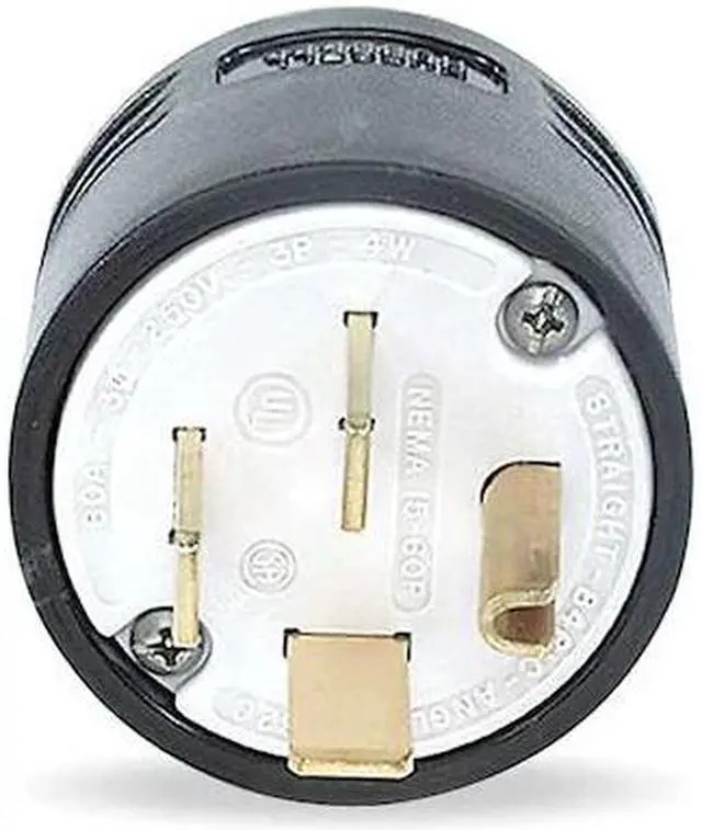 Straight Blade Plug, Connection Orientation Straight, Current Rating 60 A, Grounding Grounded, Horsepower Rating 10 hp, Housing Color Black, IP Rating IP20, NEMA Plug Configuration 15-60P, Number of Blades 4, Number of Poles 3, Phase Three, Polarized Yes, Resistance Properties Corrosion Resistant, UL 94 Flammability Rating HB, Voltage Rating 250V AC, Wire Connection Type Screw Terminals, Wiring Style Standard, For Maximum Cable Diameter 1.31 in, For Minimum Cable Diameter 0.625 in. This item has been restricted from sale in the following state (s): []