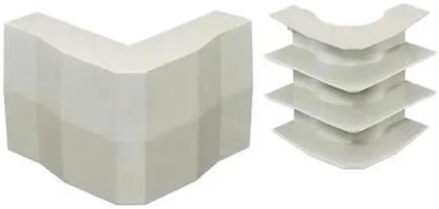 External Elbow Base and Cover, Series BaseTrak PB3, For Raceway Height 1 3/4 in, For Raceway Width 4 1/2 in, For Raceway Width x Height 4 1/2 in x 1 5/8 in, Material Non-Metallic, Color Ivory, Number of Channels 2, 3, Mounting Style Snap On, Bend Radius 1.25 in, Compatible with Product Type Base-Trak Raceways, Features Full Capacity 1 1/4 in Bend Radius External Elbow, Includes (1) External Elbow, Overall Height 4 3/4 in, Overall Length 6 1/2 in, Overall Width 6 1/2 in.