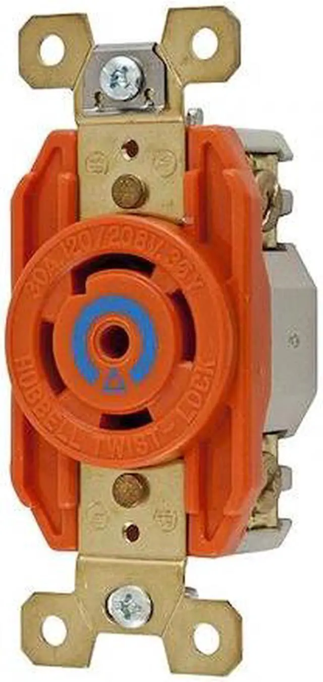 Locking Receptacle, Connection Orientation Straight, Current Rating 30 A, Flange Type Non-Flanged, Housing Color Orange, Housing Material Nylon, Mount Type Flush, NEMA Enclosure Rating 1, NEMA Receptacle Configuration L21-30R, Number of Gangs 1, Number of Poles 4, Number of Wires 5, Phase Three, Polarized Yes, Shrouded No, Voltage Rating 120/208V AC, Wire Connection Type Screw Terminals, Wiring Style Standard, AFCI No, Contact Material Brass, Cover Type No Cover, Flange Diameter Not Applicable. This item has been restricted from sale in the following state (s): []