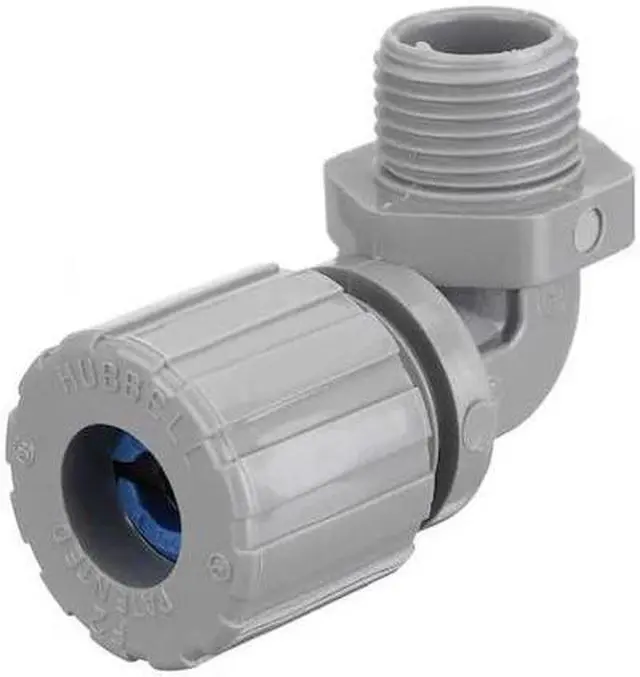 Liquid Tight Cord Connector, Cord Dia. Range 0.38 in to 0.50 in, Box Connection 3/4 in MNPT, Material - Cord Connector Nylon, External Strain Relief Material No External Strain Relief, Gland Color Code Blue, Body Color - Cord Connector Gray, Number of Cords 1, Style - Connector 90 Degrees, Strain Relief Type No External Strain Relief, External Strain Relief Length No External Strain Relief, Length - Box to End of Connector 1 5/8 in, Insulated Yes, Standards CSA LR27378, UL E54218 (M). This item has been restricted from sale in the following state (s): []