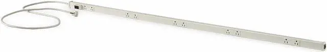 Outlet Strip, Application Workbench and Cabinet, Housing Material PVC, Total Number of Outlets 6, Max. Amps 15 A, Cord Length 6 ft, Number of Power Switches 1, Power Indicator No, Number of Outlet Rows 1, Receptacle Configuration NEMA 5-15R, Plug Configuration NEMA 5-15P, Wire Size 14 AWG, Mounting Style Screw Through Base or Supporting Clip, Color White, Medical Facility Use Not Allowed, Number of Transformer Outlets 0, Number of Conductors 3, Voltage 125V AC, Outlet Center Distance 12 in. This item has been restricted from sale in the following state (s): []
