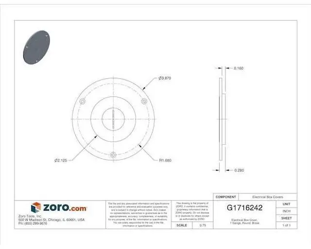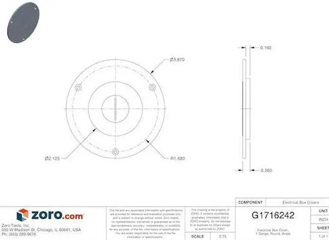 Floor Box Cover, Shape Round, Number of Gangs 1, Length 3 7/8 in, Width 1/2 in, Material Brass, Finish Brushed, For Use With and B25 Series Floor Boxes, PFB Series, BA2 Series, Standards UL 514, UL/CSA. This item has been restricted from sale in the following state (s): []
