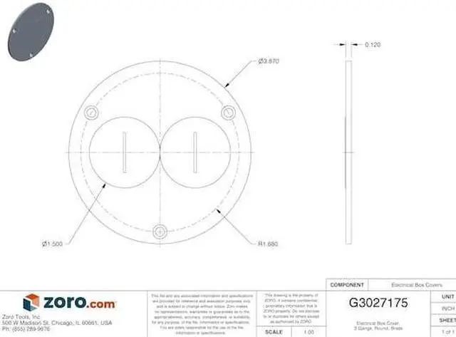 Floor Box Cover, Shape Round, Number of Gangs 1, Length 3 7/8 in, Width 1/8 in, Material Brass, Finish Brushed, For Use With and B25 Series Floor Boxes, PFB Series, BA2 Series, Standards UL 514, UL/CSA. This item has been restricted from sale in the following state (s): []