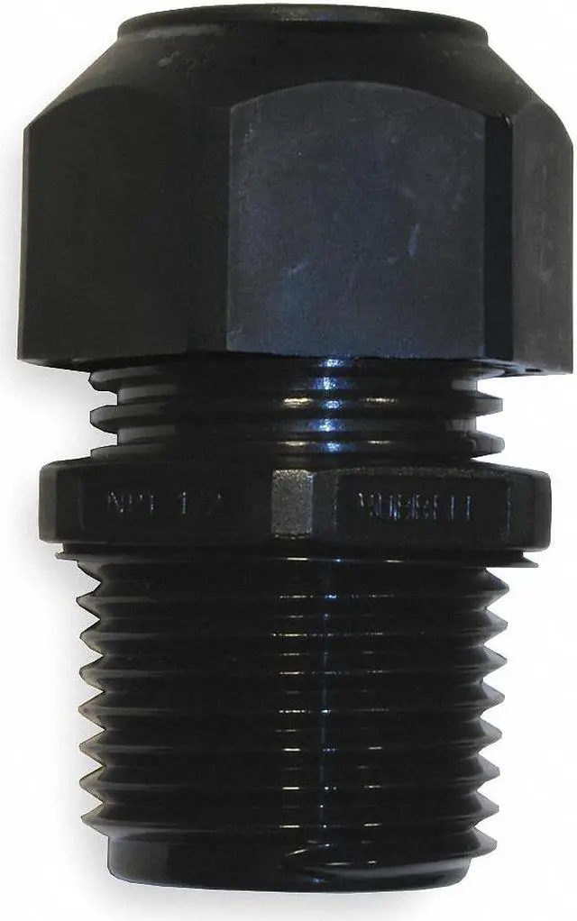 Liquid Tight Cord Connector, Cord Dia. Range 0.38 in to 0.50 in, Box Connection 1/2 in MNPT, Material - Cord Connector Nylon, Material - External Strain Relief No External Strain Relief, Gland Color Code Blue, Body Color - Cord Connector Black, Number of Cords 1, Style - Connector Straight, Strain Relief Type No External Strain Relief, Length - External Strain Relief No External Strain Relief, Length - Box to End of Connector 1.5 in, Insulated Yes. This item has been restricted from sale in the following state (s): []
