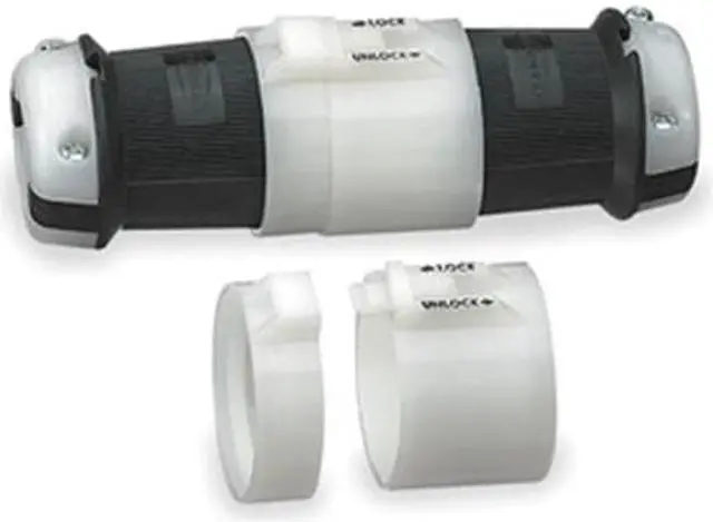 The HUBBELL Insulgrip Latching Kit is a plug and connector accessory intended to facilitate connection between electrical plugs and connectors. It features a double locking mechanism that includes features intended to reduce the likelihood of unintentional disconnection, even in high vibration conditions. The kit engages two locking mechanisms: one at initial connection and another via a position locking slide.