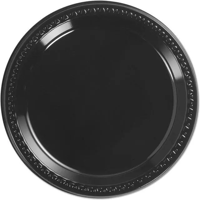 High-gloss shine and a classic, stackable design Cut-resistant and leak-resistant - a great choice for your breakroom or parties. Huhtamaki Round Heavyweight Plastic Plates, 9in. Diameter, Black, Pack Of 125 is one of many Plates available through Office Depot. Made by Huhtamaki.