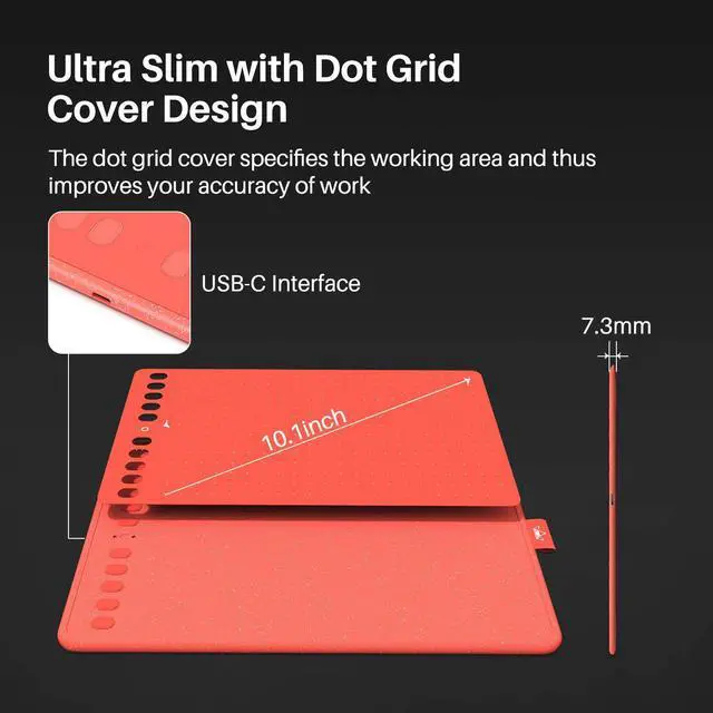 --Large Working Area:6.35x10.17 inch(161.5x258.4 mm) sufficient working surface, provides you a carefree drawing experience.
