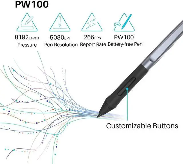 Outfitted with Huion's latest battery-free stylus PW100, say goodbye to charging cables; Don't need to worry about the potential battery leakage and run-out.