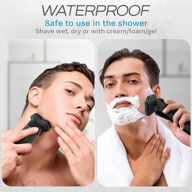 WATERPROOF Safe for use in the shower or at the sink. Use with cream, foam, gel or completely dry. Makes for quick and easy cleaning.