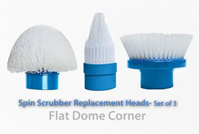 Hurricane Spin Scrubber Replacement Heads for tile grout. Don't be fooled by knock offs These replacement scrubbing heads replace your original brush heads from the manufacturer. Their flexible bristles are designed to fit into tough cracks and crevices with powerful 300 rpm scrubbing action to wipe away grime on sinks tubs showers patio furniture wheels bicycles and more. Packaging may vary. The item may not ship in retail packaging. Offer includes 3 packs of replacement scrubbing heads 1 multipurpose 1 corner brush and 1 extra wide flat brush. The spin scrubber and handle are sold separately.