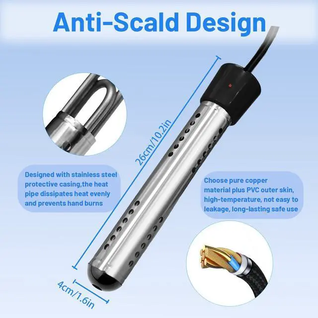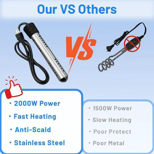 FAST HEATING: With 2000 watts of power, it can heat up to 5 gallons of water in minutes!