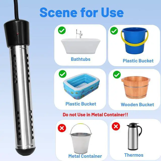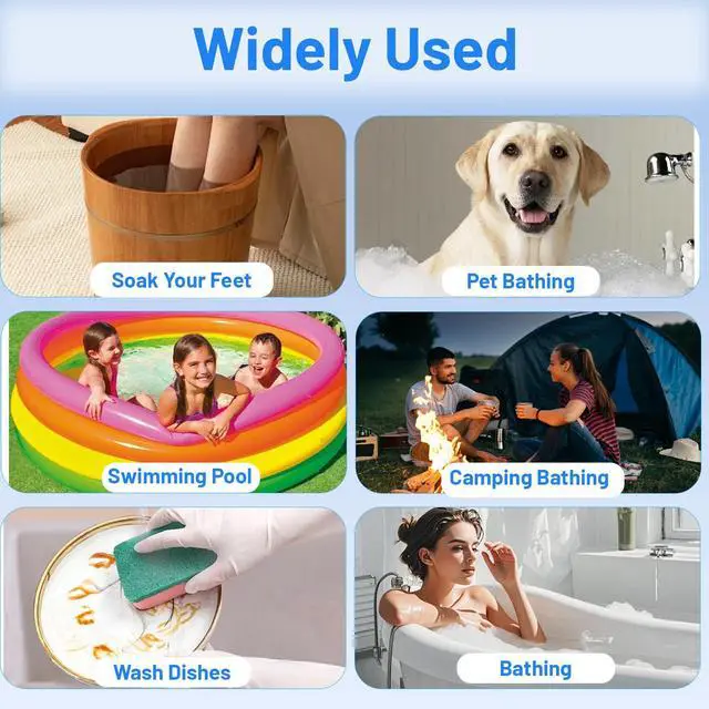 WIDELY APPLICATION: Suitable for various scenarios, such as bathtubs, washbasins, swimming pools, buckets, sinks, etc., whether you need hot water indoors or outdoors, this portable water heater is a very good and good choice
