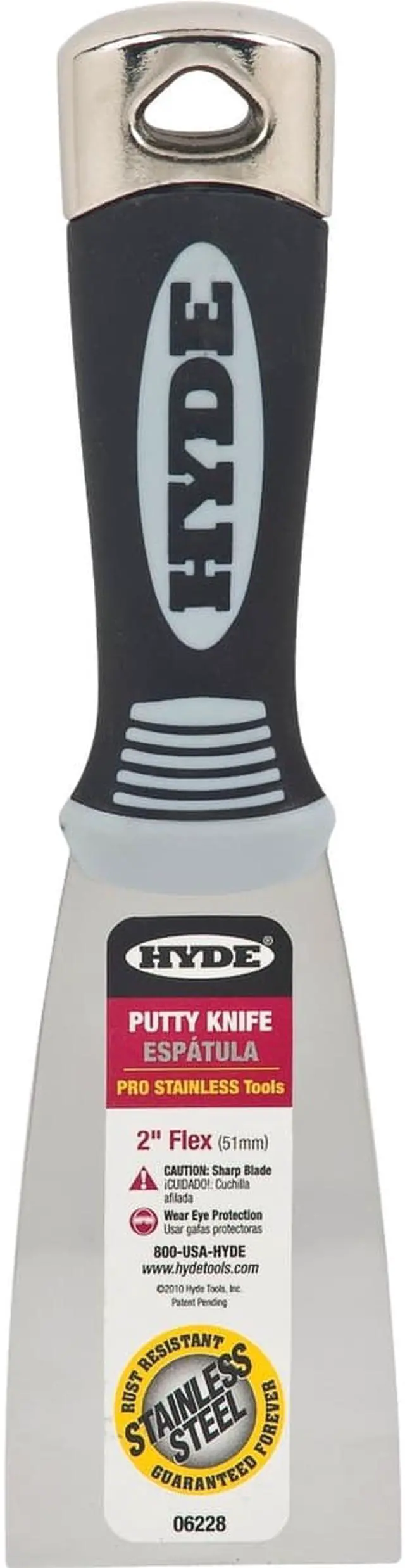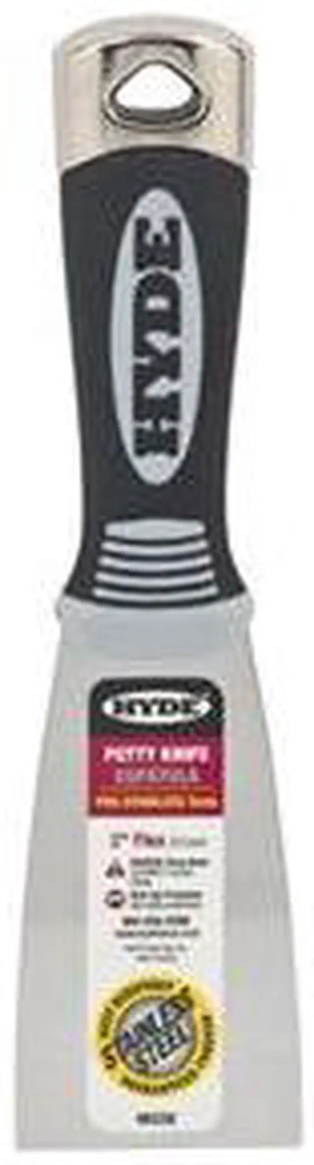Drywall and Putty Knives, Nonsparking No, Flexible, Blade Type Double Hollow Ground, Blade Width 2 in, Blade Material Stainless Steel, Handle Material Plastic, Putty Knife, Blade Length 3 7/16 in, Handle Length 4 1/4 in, Handle Design Hammer Head, Soft Grip, No. of Edges 1, Color Black/Cream, Overall Length 7 3/4 in. This item has been restricted from sale in the following state (s): []