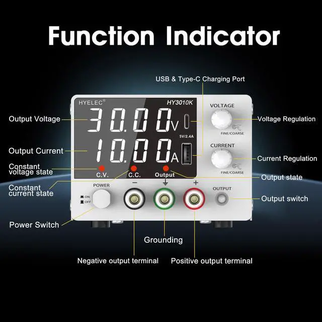 This power supply is specially equipped with the output button "Output" to prevent you from damaging the device by forgetting to disconnect the output.